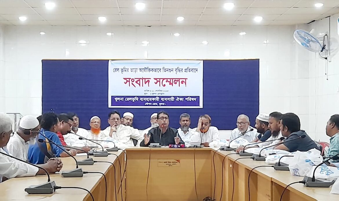 রেলভূমির ভাড়া তিনগুণ বৃদ্ধির প্রতিবাদে খুলনায় ব্যবসায়ীদের সংবাদ সম্মেলন