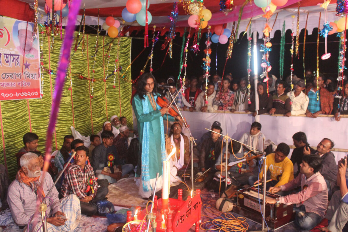কথা বলা শেষে শান্তি-প্রমিলারা পদ্মপুরাণের গান পরিবেশন শুরু করেন। গানের তালে তালে দোহারের ভূমিকায় ‘ছড়’ (ঝেড়ে বিষ নামানোর উপকরণ হিসেবে ব্যবহৃত এক ধরনের চামর) হাতে লক্ষ্মীন্দরের শরীর থেকে বিষ নামানোর অভিনয় করছিলেন পার্বতী। তখনই বিশেষভাবে চোখে পড়ে মধ্যবয়স্ক এক পাটুয়াজ-বাদককে। পরে জানা গেল, তাঁর নাম সনৎ দেবনাথ। তবে ‘সনৎ বাইন’ হিসেবেই সবাই তাঁকে চেনেন। তাঁর বাড়ি সুনামগঞ্জের ছাতকের কপনা গ্রামে। ৪৫ বছর ধরে লোকবাদ্য বাজিয়ে আসছেন। কী অসাধারণ তাঁর বাদন-প্রতিভা!