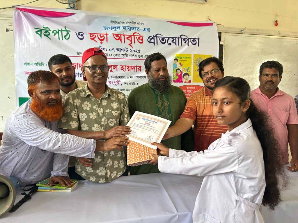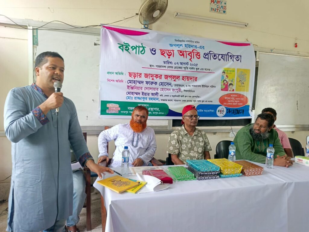 বৃহস্পতিবার (৭ আগস্ট) রংপুরের পায়রাবন্দে অবস্থিত বজলুর রহমান গ্রন্থাগার-এর উদ্যোগে পায়রাবন্দ বেগম রোকেয়া স্মৃতি গার্লস স্কুল এন্ড কলেজ হলরুমে এ প্রতিযোগিতা অনুষ্ঠিত হয়। এতে প্রধান অতিথি হিসেবে উপস্থিত থেকে পুরস্কার বিতরণ করেন ছড়াকার জগলুল হায়দার।
