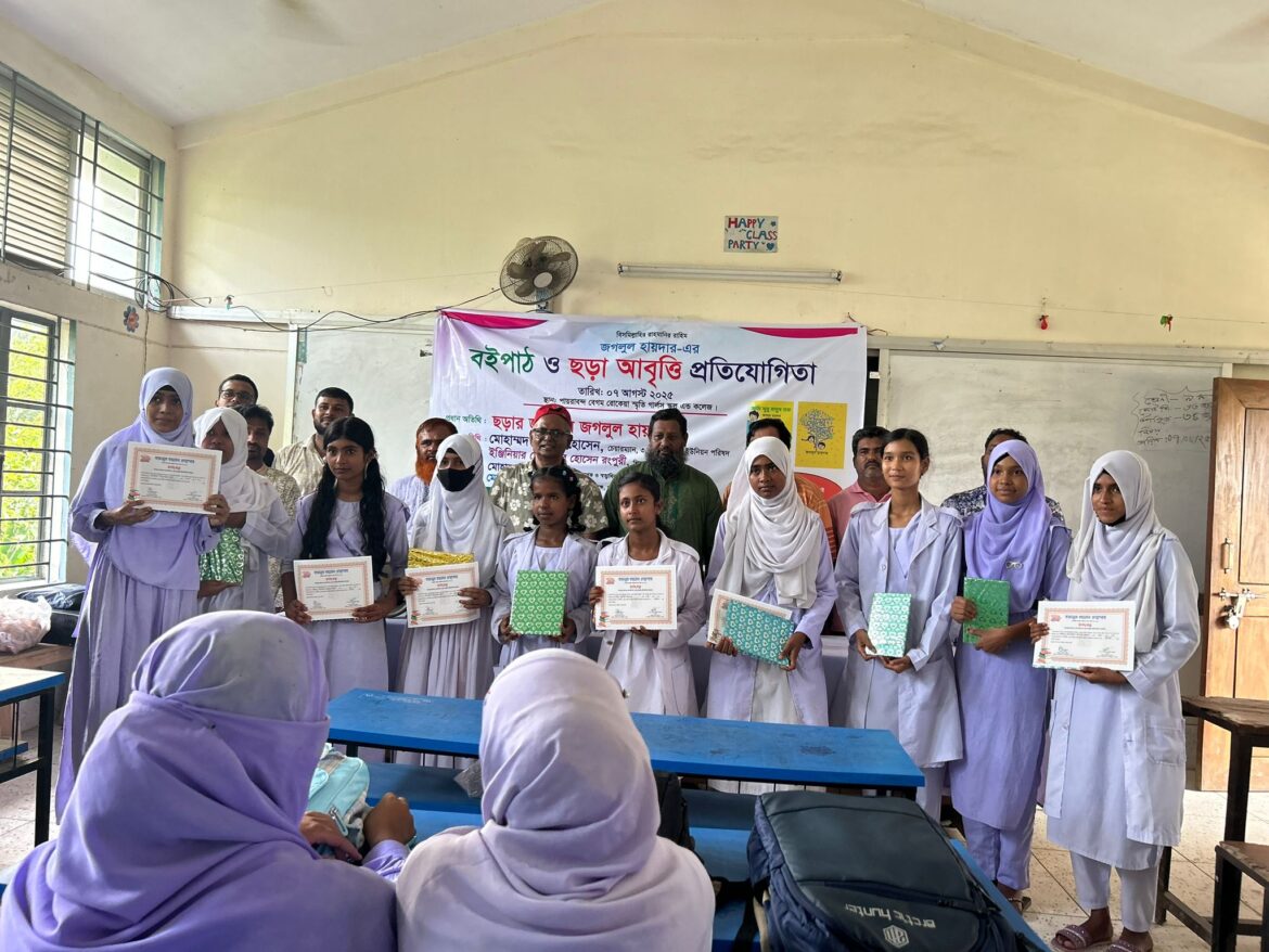 ছড়ার জাদুকর জগলুল হায়দার-এর লেখা বই “আমি শুধু মানুষ হবো” এবং “মনের ইশকুল” এর বইপাঠ ও আবৃত্তি প্রতিযোগিতা অনুষ্ঠিত হয়েছে।