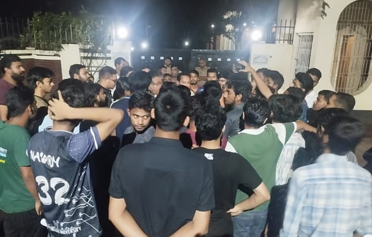 এর আগে সন্ধ্যা সাড়ে ৭টার দিকে বিক্ষোভকারীরা মিছিল নিয়ে বিভিন্ন হলের সামনে গিয়ে মাইকিং করে কর্মসূচিতে যোগদানের আহ্বান জানান। পরে উপাচার্যের বাসভবনের সামনে পৌঁছে ছয় দফা দাবি তুলে ধরেন তারা।