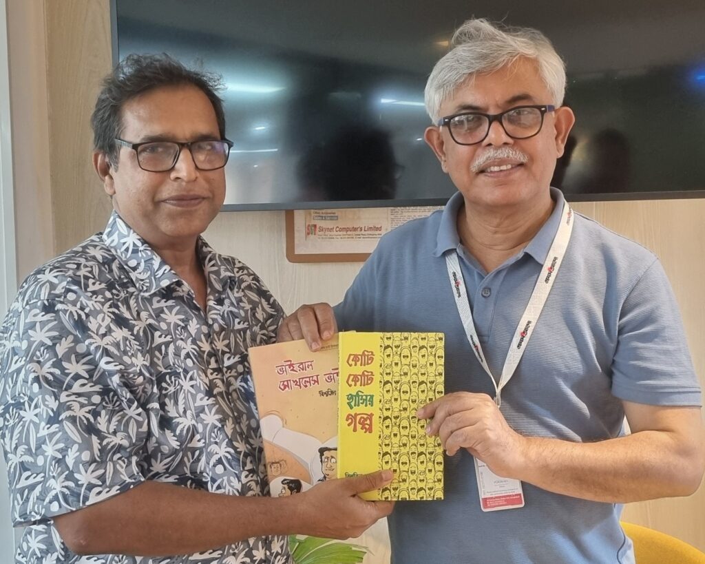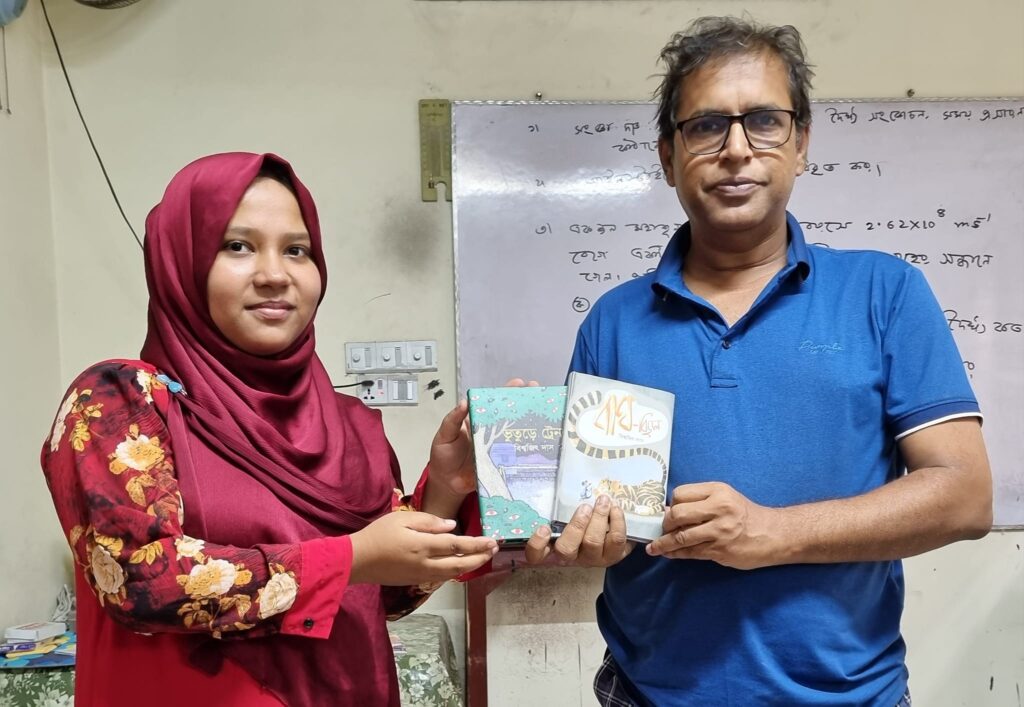 নিজের লেখা দুটি উপহার দিচ্ছেন বিশ্বজিৎ দাস