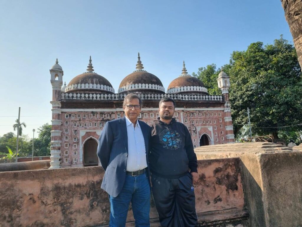 বিশ্বজিৎ দাসের সঙ্গে প্রশান্ত ভৌমিক দিনাজপুরের নয়াবাদ মসজিদের সামনে