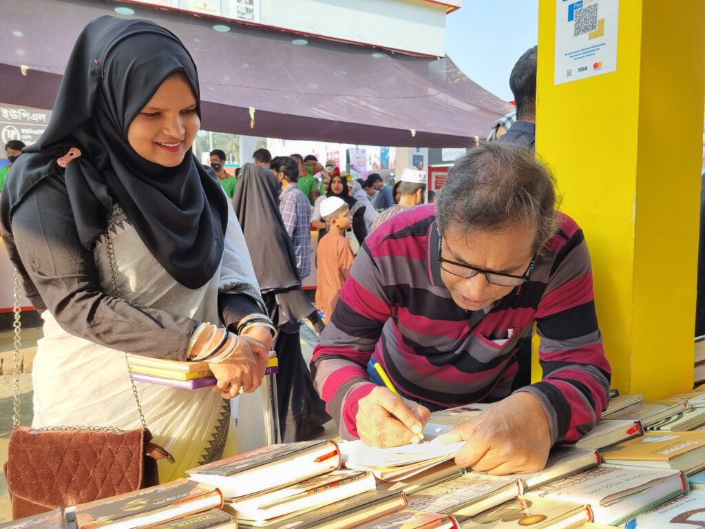 বিশ্বজিৎ দাসের অটোগ্রাফ নিচ্ছেন পাঠক